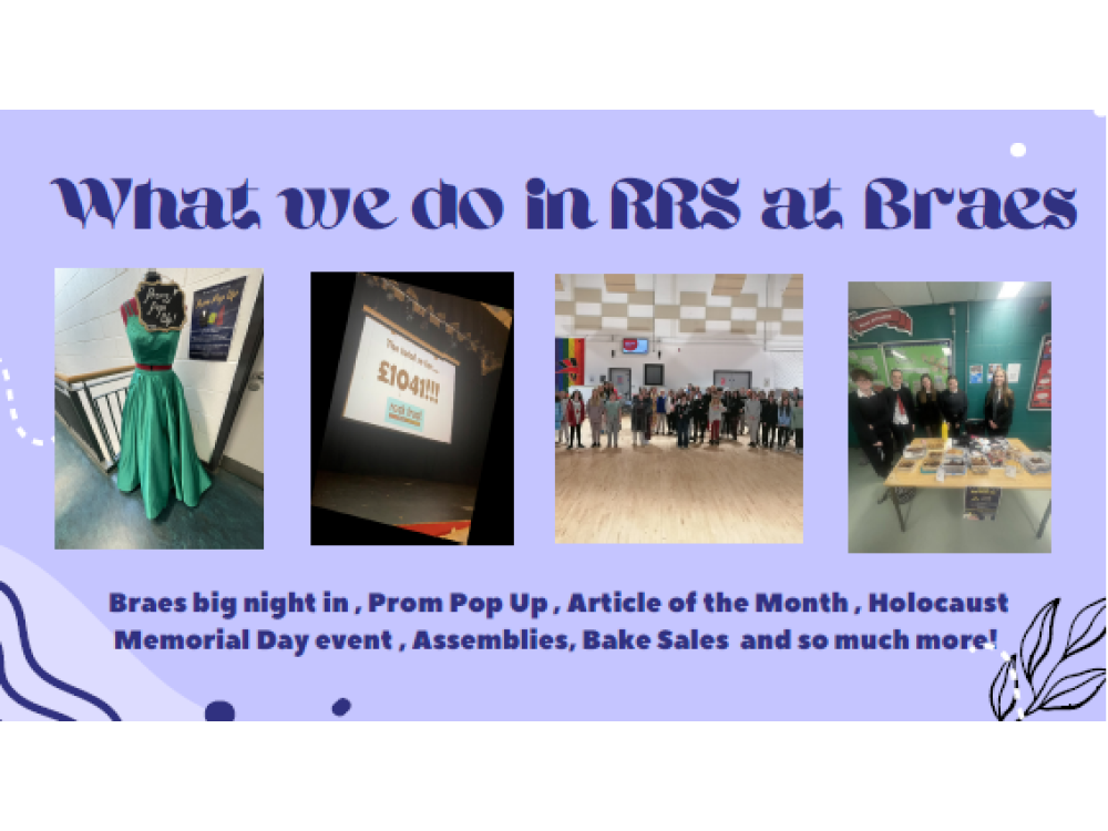 The RRS Steering group meets on a Tuesday at lunch to discuss and take forward anything within the school. There is also the RRS PD Column who focus on Christmas present drive and help with a whole host of other things at Braes!